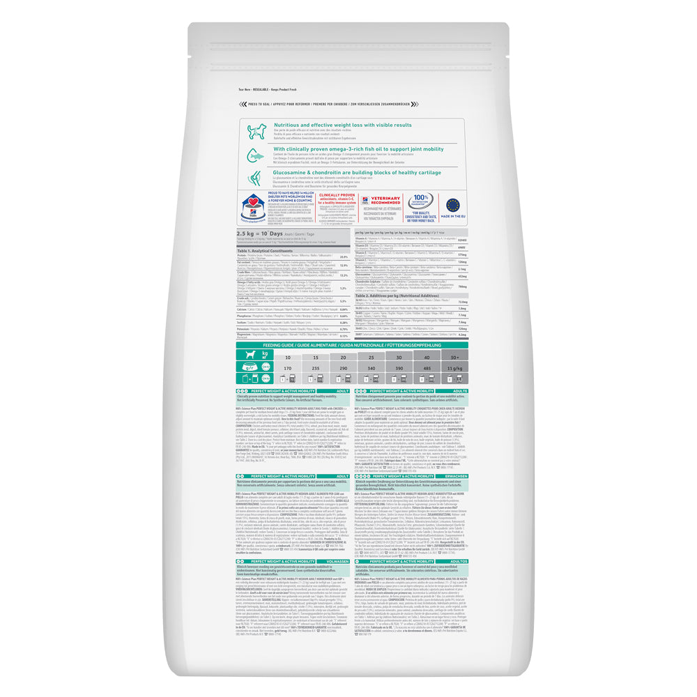 Hill's Science Plan Dog Adult Perfect Weight & Active Mobility Small & Mini is a dry food designed to help small and mini adult dogs maintain ideal body weight while supporting joint health and mobility. Formulated with high-quality lean protein and joint-supporting nutrients, it helps prevent weight-related mobility issues in dogs prone to weight gain.