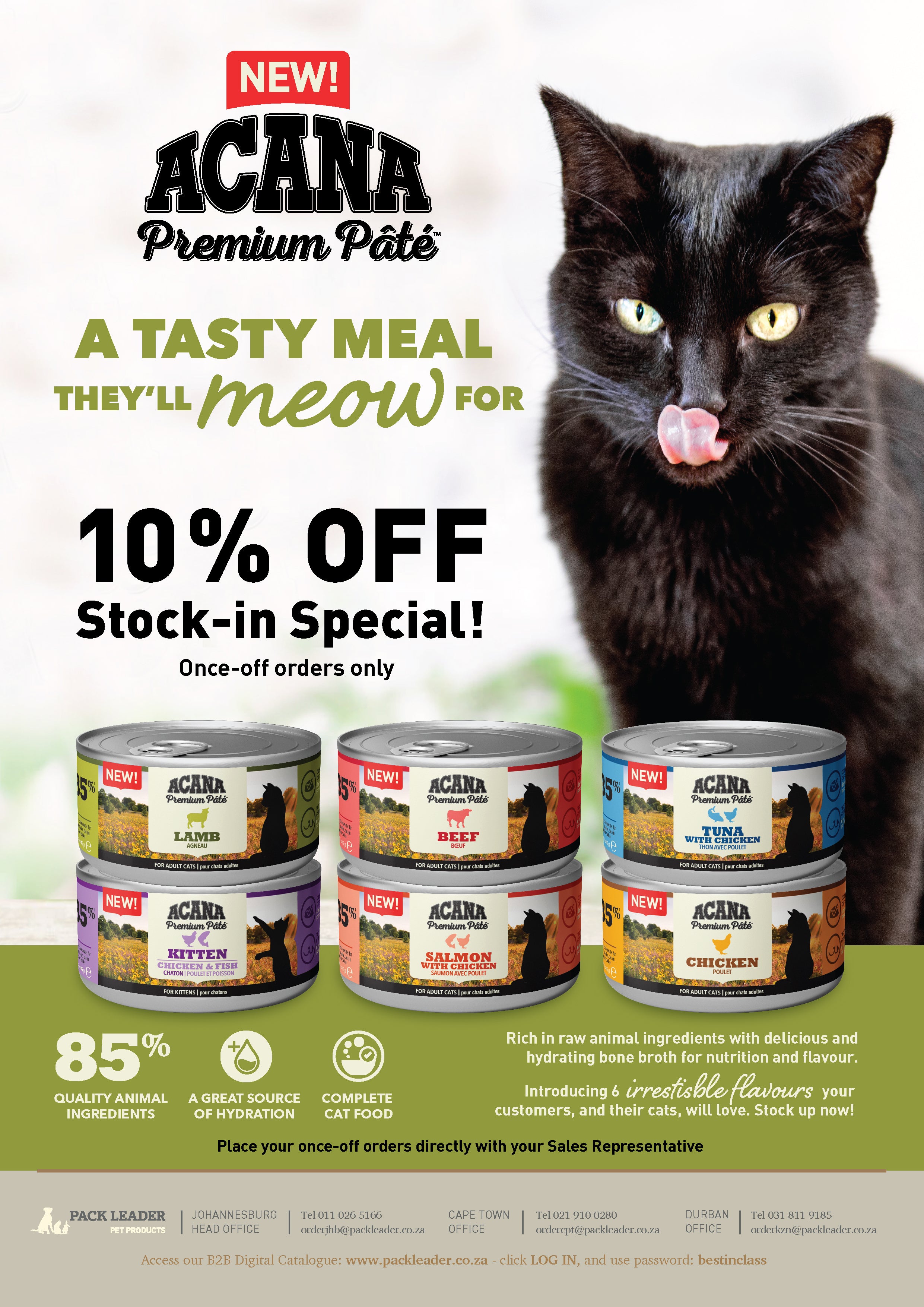 Acana's Beef recipe is an animal protein-rich pâté crafted to satisfy your feline completely. Its premium animal ingredients and bone broth provide the quality nutrition your cat needs to live its fullest life.