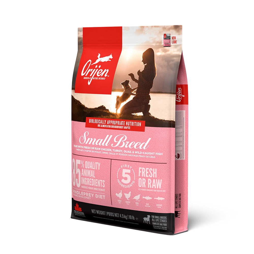 Help your dog thrive with the power of protein-rich recipes that provide peak nourishment. Your small-breed dog has certain nutritional needs and requires a Biologically Appropriate diet in order to thrive. Orijen Small Breed diet is made specifically for smaller dogs, with nourishing protein from free-run chicken and turkey, wild-caught fish and quail all packed into a unique kibble shape that is easier for them to eat. Packed with fresh or raw WholePrey animal ingredients, Orijen food is made with the most nutrient-dense, succulent parts of the prey to deliver the nutrition dogs need. The result is a diet for your small canine companion that is beyond comparison.